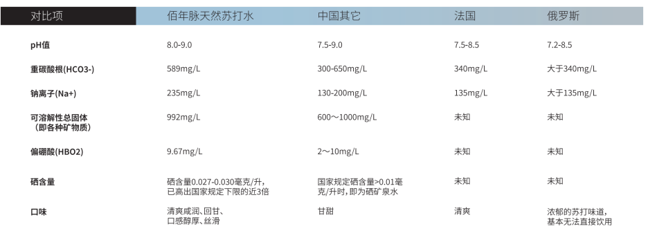 国内外天然苏打水,谁主沉浮?发表时间:2024-08-17 10:00 天然苏打水源自大自然,无任何添加,呈天然弱碱性,同时含多种微量元素成分。且天然苏打水水源举世罕有,中国是继法国、德国、俄罗斯、日本之后第五个发现天然苏打水水源的国家。 ![]() 天然苏打水水源罕有,那同为天然苏打水,佰年脉天然苏打水与国内外的水源有什么区别呢?今天小编带大家一起来认识下其中的区别。 据《中国民族卫生协会团体标准》T/CNHAW 0002–2017,天然苏打水是指从地下深处自然涌出或经钻井采集的HCO3-Na型水,不含游离二氧化碳,呈弱碱性,在一定区域内未受污染,并采取预防措施避免污染,其动态指标在天然周期波动范围内相对稳定。 佰年脉秉着“崇尚自然,健康为本”的品牌核心价值观,对水源品质有着极高的要求,创始团队遍访全国及世界,对30多处水源进行考察,并通过抽样检测、数据评比等多种方式,精益求精,优中选优。 ![]() 佰年脉首个水源地座落于“中国天然苏打水之乡”的至优腹地,位于黑龙江克东县金城乡古城村“金代蒲峪路城遗址”,东北方向 1.5 公里,生产基地占地面积近 8.7 万平方米,可用建筑面积近 2万平方米。 佰年脉天然苏打水属于沉积、埋藏型地下水类型,含水层卫生保护条件好,该水源钻井至地下350米深处,罕见地打通了白垩纪砂岩(方解石)承压的天然苏打水地下自涌井,水井中水温5℃经久不变,其PH值在8.5±0.5,其适中的天然PH值世界罕见。 ![]() 对比国内外天然苏打水水源,其酸碱性和矿物质含量存在明显差异。 ![]() 部份数据摘自 : 龚洪伟·克东印象 [M] .黑龙江人民出版社 2016年4月1日版:苏打水之乡全球响当当- 189页 佰年脉天然苏打水水源可溶解性总固体992mg/L,钠离子235mg/L,重碳酸根589mg/L,偏硼酸9.67mg/L,检测数值均比国内外天然苏打水公布数值优质。(重碳酸根和钠离子越高,影响水中的PH值,对体内酸碱平衡影响越大;可溶解性总固体越高,矿物质越丰富;偏硼酸越高,代表其对人体起活化细胞、增强新陈代谢和排毒作用影响越大) 且经专家鉴定该天然苏打水不是单纯碱性水,其硒含量也非常高(国家规定硒含量>0.01毫克/升时,即为硒矿泉水),而佰年脉天然苏打水的硒含量为0.027-0.030毫克/升,高出规定下限的近3倍。(硒含量越高,对增强人体免疫力,抗氧化作用影响越大) 即便佰年脉天然苏打水水源的可溶解性总固体(TDS)较高,且没有任何添加剂的情况下,仍保持了其独特清爽口感,咸润甘醇,入口丝滑回甘,是国内外大多数天然苏打水难以做到的。 ![]() 2023年世界品质品鉴大会委任德国 Doemens 学院、全球顶尖品水师和风味技术专家组成评审团,经多达25项质量体系评选,佰年脉天然苏打水水源荣获蒙特奖金奖水源。 ![]() 佰年脉天然苏打水水源获蒙特奖金奖水源 此奖项意味着佰年脉天然苏打水水源已经获得国际社会包括食品发达国家的认可与推崇,充分证实佰年脉的品质实力及未来发展潜力,同时也体现了国际舞台对中国民族品牌的肯定。 在这个快节奏污染重的时代,佰年脉坚持“崇尚自然 健康为本”的品牌理念,选择优中之优水源,保护珍稀水源,在水源地灌装生产,不添加任何化学物质改变矿物质含量和口感,为人们提供健康优质的天然苏打水,滋养身体,共同享受来自大自然的纯净与美好。 ![]() 佰年脉天然苏打水批量生产 健康就选佰年脉 佰年脉天然苏打水源自24900年前,地下350米深处,天然纯净无添加,呈天然弱碱性。 且小分子团更易吸收,内含17种微量元素,矿物质犹如生命的火焰,共同促进人体内环境的健康循环! 口感咸润甘醇,丰富圆润,滴滴回甘! ![]() 免责声明: 我们致力于保护任何第三方权益,若无意中侵犯了您的合法权益,敬请告知我们,我们将第一时间处理。转载或引用仅为传播更多信息,部分素材来源于互联网, 无法核实其真实出处, 如涉及侵权请联系我们删除。 |